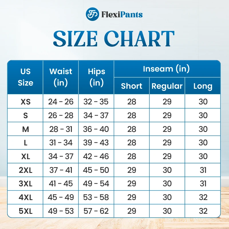 FlexiPants feature an elastic waistband and loose straight leg, letting you slip into style in just seconds—a hassle-free upgrade from traditional buttons and drawstrings.